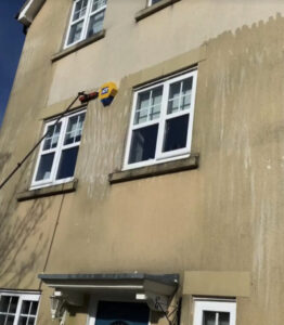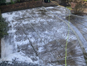 Its not always appropriate to pressure wash roof, render and patios with a high power washer which can ultimately cause damage similar to a hail storm, knocking off the aggregate that is designed to protect the walls or shingles from weathering and UV degradation.